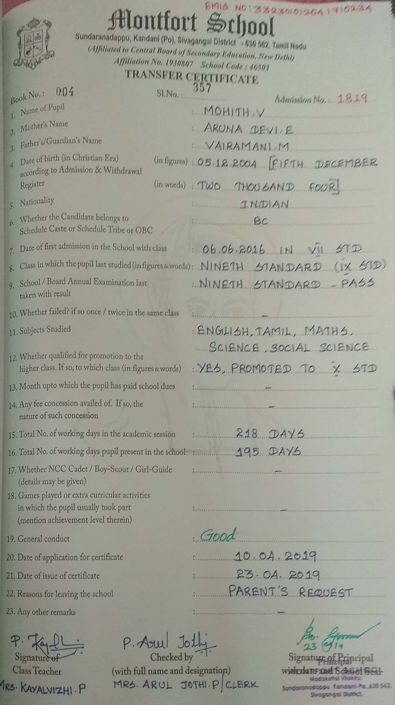 2018-19 - IX std TC